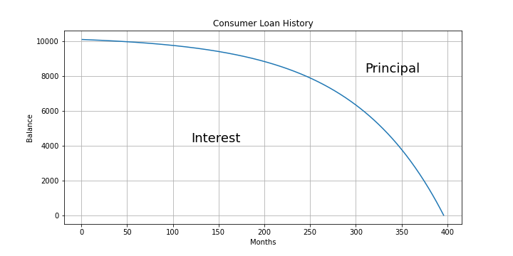 The most important thing to understand about consumer loans is that they obey the rules of compound interest — interest amounts that directly add to, or subtract from, the loan's balance. To understand why this is important, consider this loan's terms: